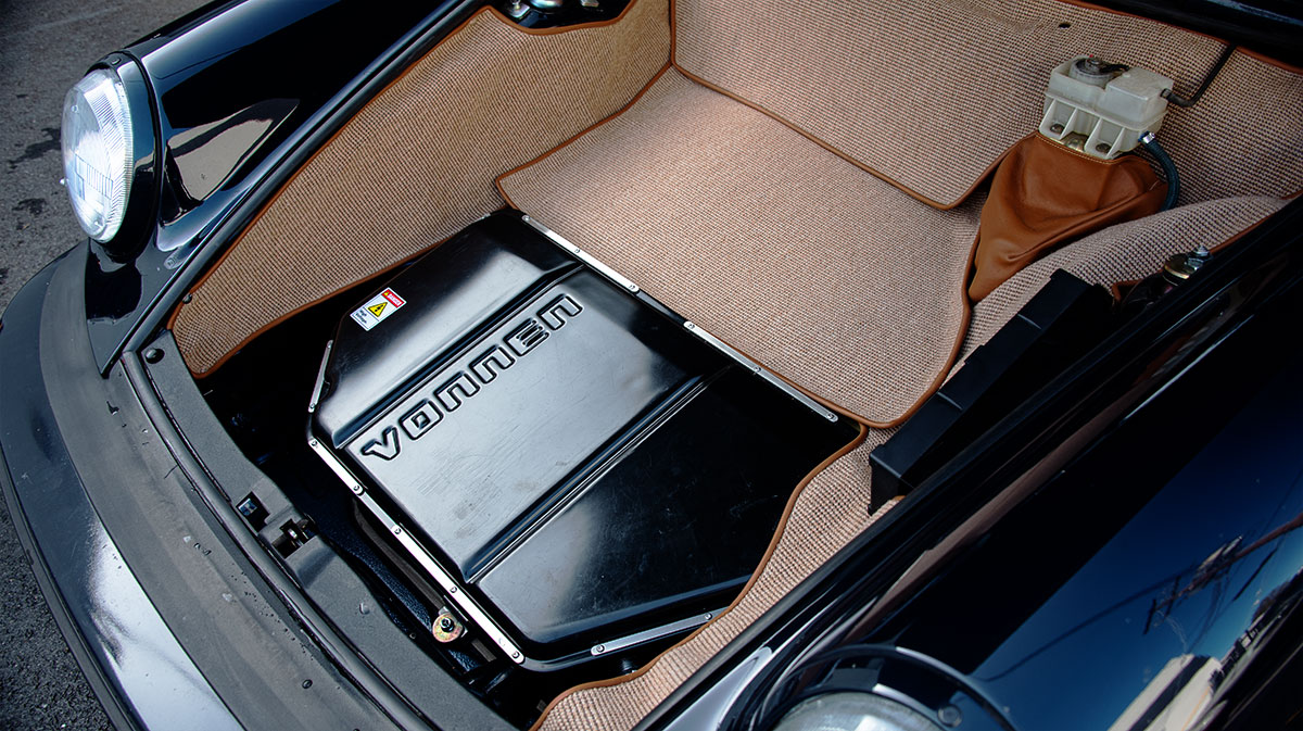 Integrated between engine and transmission, the motor layout for this air cooled car is consistent with the Shadow Drive systems for water-cooled 911s. However the details are all different including bell housing diameter, bolt pattern, original starter motor location and more. Hence we developed a completely new custom motor designed specifically for air-cooled fitment.